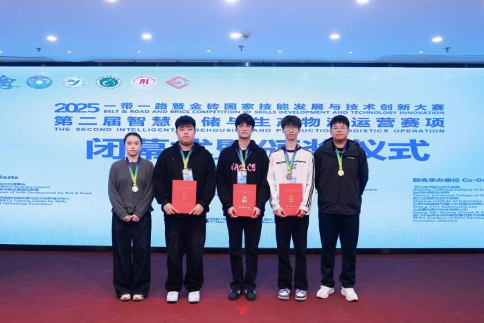 在賽事角逐中,教師組與學生組雙線告捷。由吳雅婷、王錚兩位教師組成的教師團隊,憑借對智慧倉儲運營邏輯的精準把握、智慧物流設備的嫻熟操作,以及對賽題需求的高效響應,一路穩扎穩打,成功摘得教師組金獎;學生組方面,物流商貿專業的胡俊杰、黃志軍與高俞范涵三位同學緊密協作,在高強度賽程中沉著應對挑戰,將課堂所學與實訓技能靈活運用到實際操作中,最終拿下學生組銀獎。