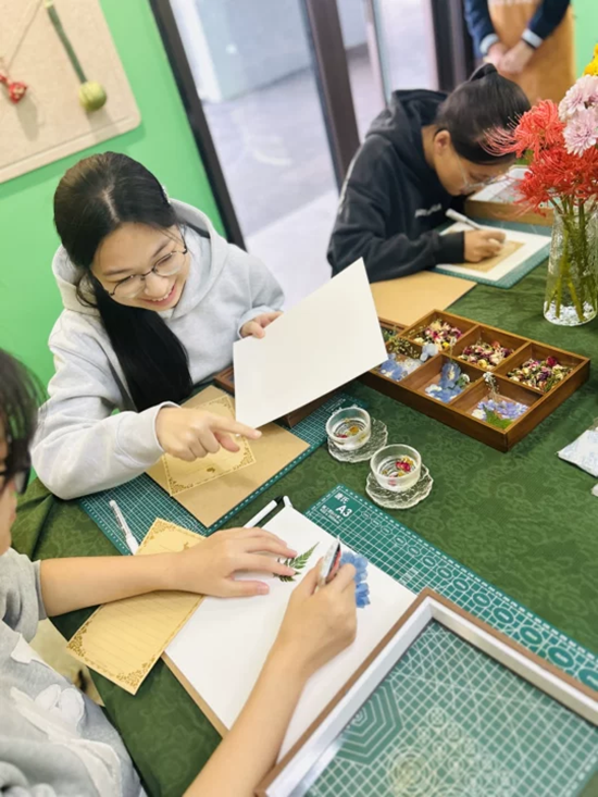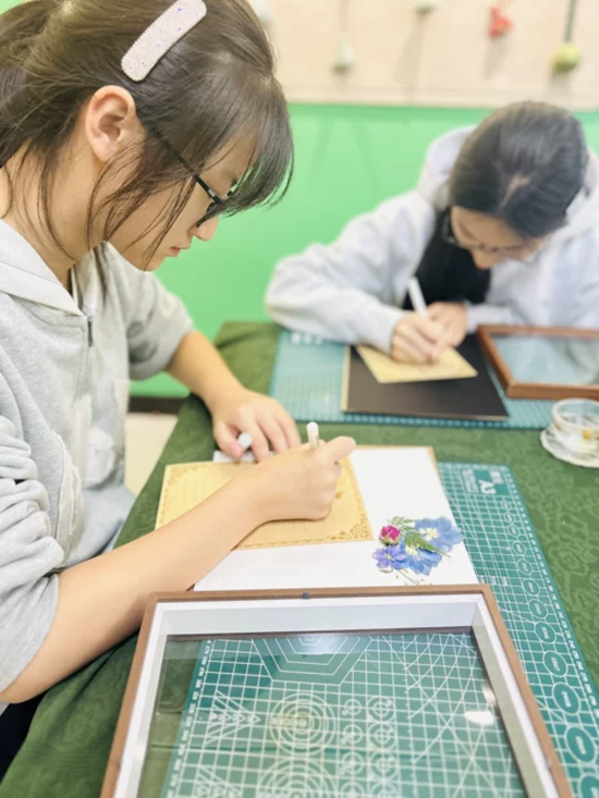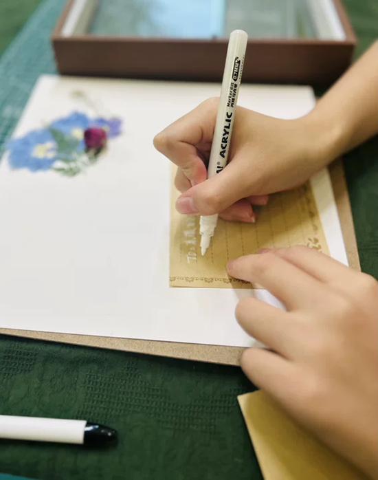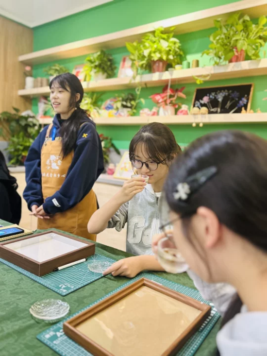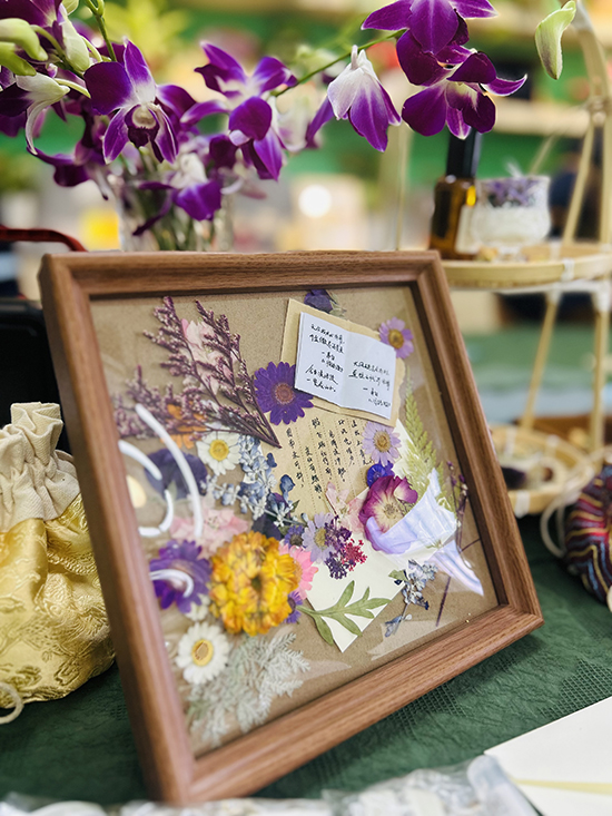隨后,大家親手挑選干花,設(shè)計(jì)制作獨(dú)一無(wú)二的鮮花相框。視覺(jué)的美感與手作的專注,本身就是一種極佳的療愈。每一片花瓣的粘貼,都是內(nèi)心秩序與美好的重建。