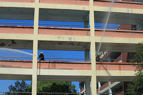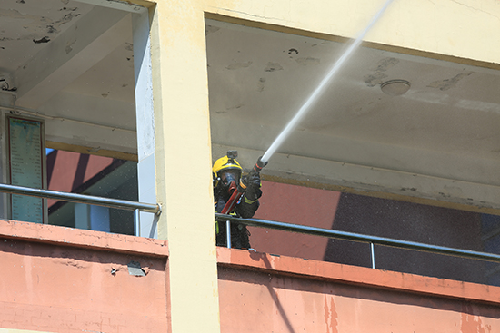 演練中,師生按照預定路線快速有序撤離,全程緊張高效。隨后,消防員現場示范滅火器正確使用方法,指導學生親手操作,掌握基本滅火技能。消防作業車和登高救援設備的展示,讓同學們近距離了解消防救援裝備,增強實踐體驗。