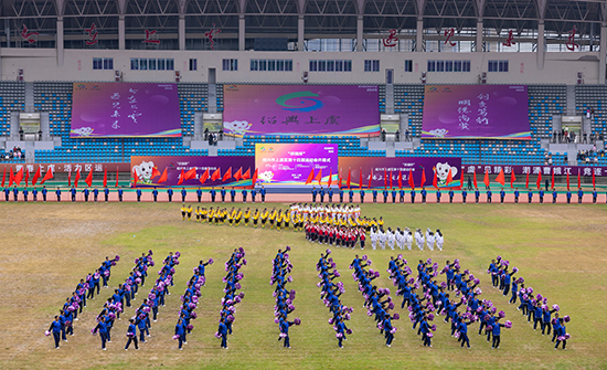 各代表隊的引導員同樣是開幕式上一道亮麗的風景線。70位舉牌手身著統一服裝,面帶微笑,舉止優雅,以標準的身姿和從容的步伐,引領著一支支運動員隊伍有序入場。每一個精準的指引、每一次溫暖的微笑,都在無聲中傳遞出上虞這座“青春之城”的友善與溫度。