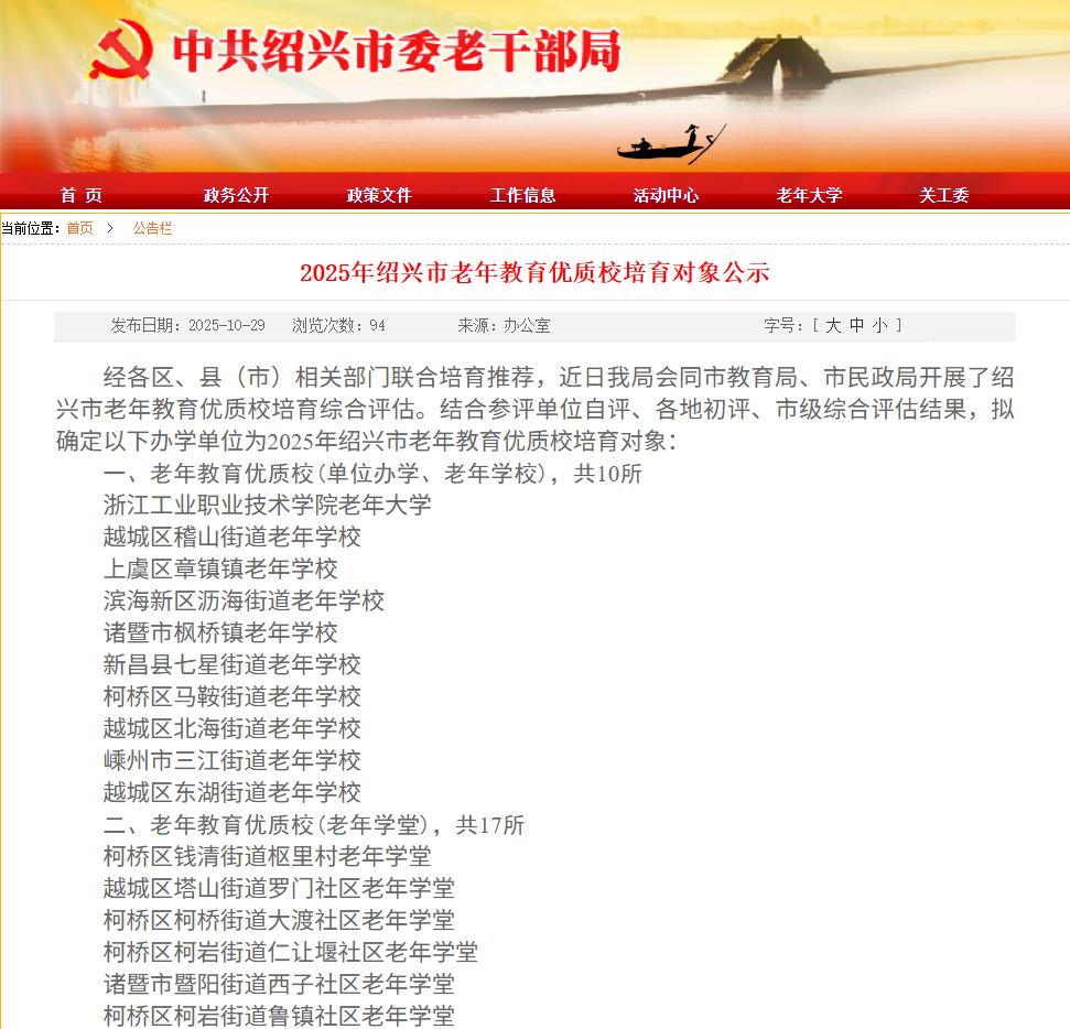 ——浙江省老年教育優質(示范)學校樞里村老年學堂被評為紹興市優質老年學堂