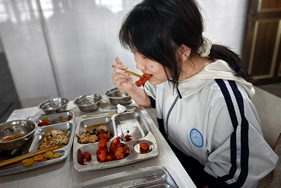 食堂的負責人循著周記里的線索,找到了那幾位寫下心聲的同學。同學們被邀請至食堂,心心念念的糖醋里脊熱氣騰騰地端到了她們面前。這場始于筆尖的期盼,完成了一場溫暖的“雙向奔赴”。