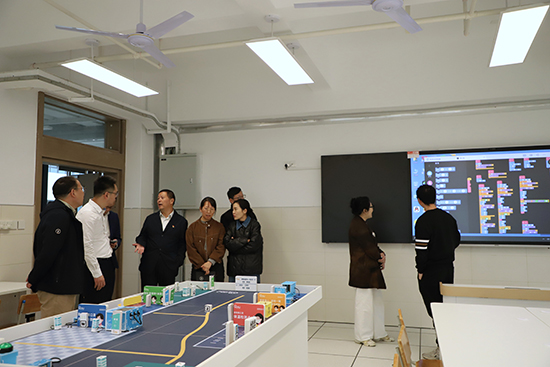 在鄞州職高校長(zhǎng)張武劍的陪同下,高校與企業(yè)代表一同參觀了學(xué)校的數(shù)字綜合實(shí)訓(xùn)室、百度AI綜合實(shí)訓(xùn)室、數(shù)智職業(yè)體驗(yàn)中心、數(shù)智星工場(chǎng)、AI科創(chuàng)實(shí)訓(xùn)室等現(xiàn)代化教學(xué)實(shí)踐場(chǎng)所。參觀過(guò)程中,各方代表對(duì)學(xué)校先進(jìn)的設(shè)施設(shè)備、豐富的教學(xué)場(chǎng)景以及濃厚的數(shù)智化育人氛圍給予了高度評(píng)價(jià)。