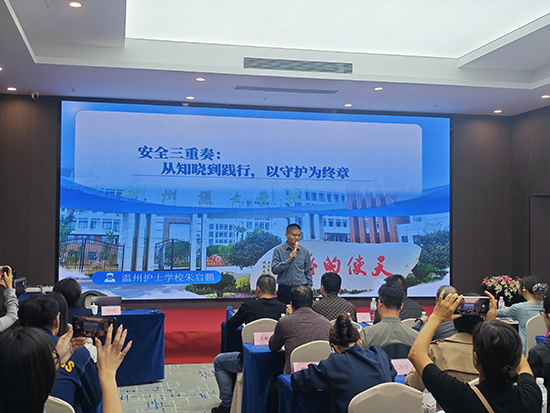 溫州護士學校副書記朱啟鵬(深耕德育與安全管理十余年)以 “學校安全管理與學生關懷” 為核心授課。他強調安全是學校首要工作,需全員參與,從軍訓、運動會、日常場景細化安全措施;還分享與家長溝通技巧、學生關懷方法,并解讀安全相關法律法規,為學校安全管理筑牢防線。