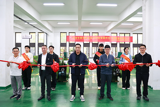 緊接著,在工作人員引導(dǎo)下,大家有序移步至實訓(xùn)樓一樓設(shè)備擺放區(qū)。王旭良、鄭才、李明建、聞金普、陳肖龍共同手持剪刀,同步剪斷紅綢,捐贈設(shè)備正式揭幕,現(xiàn)場響起熱烈掌聲,見證設(shè)備從“捐贈”到“啟用”的關(guān)鍵轉(zhuǎn)折。