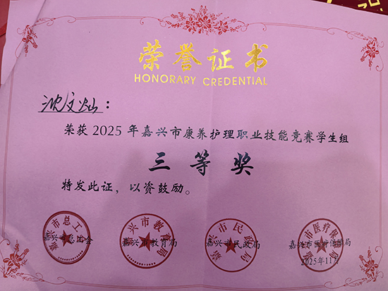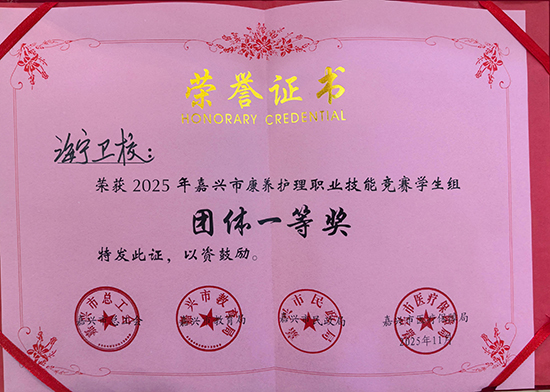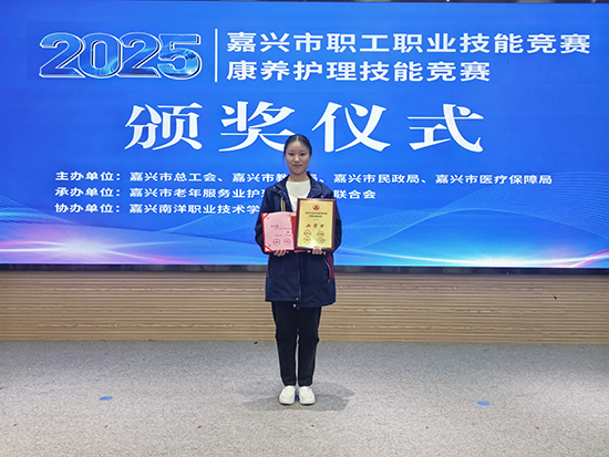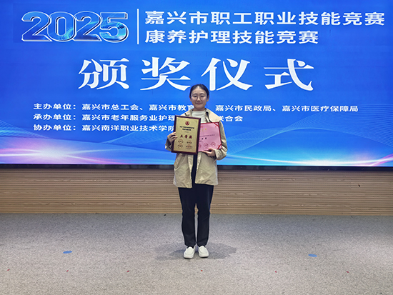 近日,2025年嘉興市康養(yǎng)護(hù)理技能競賽在嘉興南洋職業(yè)技術(shù)學(xué)院圓滿落幕。本次賽事由嘉興市總工會、市教育局、市民政局、市醫(yī)保局聯(lián)合主辦,匯聚了全市8支職工代表隊及4所職業(yè)院校的40名選手同臺競技,共同角逐康養(yǎng)護(hù)理領(lǐng)域的技能巔峰。海寧衛(wèi)生學(xué)校學(xué)生章宋穎、沈文燦憑借扎實(shí)的專業(yè)功底與溫情的服務(wù)理念脫穎而出,分別榮獲學(xué)生組二等獎、三等獎,同時榮獲學(xué)生組團(tuán)體一等獎,更在現(xiàn)場成功簽約企業(yè),為青春交出了一份亮眼答卷。