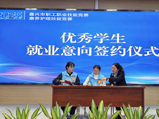 令人欣喜的是,憑借賽場上的出色表現(xiàn),兩位同學(xué)現(xiàn)場便獲得企業(yè)青睞,章宋穎成功簽約嘉興管佳,沈文燦與浙江逸禾源達(dá)成就業(yè)意向,實(shí)現(xiàn)了“以賽促業(yè)”的良好成果。這一成果不僅是企業(yè)對學(xué)生個人能力的高度認(rèn)可,更是對學(xué)校康養(yǎng)護(hù)理專業(yè)人才培養(yǎng)質(zhì)量的充分肯定。