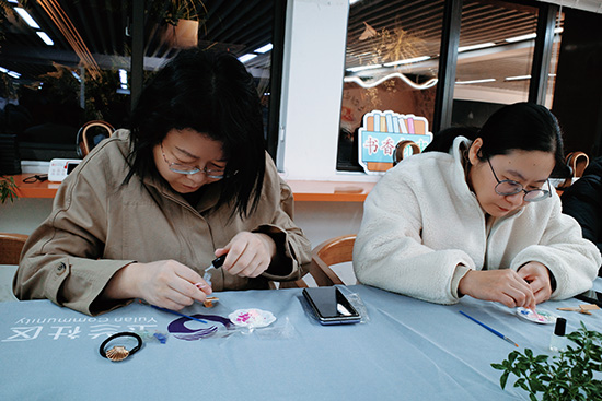 活動中,社區(qū)網(wǎng)格員提前梳理臺胞居民需求,聯(lián)動婦聯(lián)志愿者提供“一對一”材料指導(dǎo)服務(wù);非遺老師先向大家講解了螺鈿工藝“取貝為飾、以紋寄情”的千年歷史,隨后指導(dǎo)大家用貝殼薄片創(chuàng)作發(fā)圈、發(fā)夾等飾品。臺灣太太們紛紛結(jié)合生活巧思,將寶島常見的蝴蝶、花卉元素融入作品,現(xiàn)場交流聲、歡笑聲不斷。“第一次接觸螺鈿,沒想到老祖宗的手藝這么美!在社區(qū)能和姐妹們一起做手工,感覺像在家一樣親切。”臺胞張女士拿著自己創(chuàng)作的蝶形發(fā)夾笑著說。