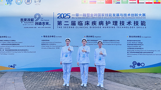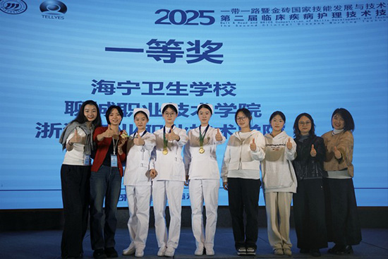 捷報(bào)頻傳,碩果相繼!繼海寧衛(wèi)生學(xué)校學(xué)子在2025年世界職業(yè)院校技能大賽康復(fù)治療與護(hù)理賽道斬獲金獎(jiǎng)并歷史性晉級冠軍總決賽之后,海寧衛(wèi)校(海寧市綜合高級中學(xué))再創(chuàng)佳績。在11月20日至23日于河南漯河醫(yī)學(xué)高等專科學(xué)校舉辦的“2025‘一帶一路’暨金磚國家技能發(fā)展與技術(shù)創(chuàng)新大賽之第二屆臨床疾病護(hù)理技術(shù)技能賽項(xiàng)”中,學(xué)校代表隊(duì)從全國49支中高職優(yōu)秀隊(duì)伍中脫穎而出,再獲一等獎(jiǎng)殊榮,續(xù)寫了“以賽促教”的輝煌篇章。