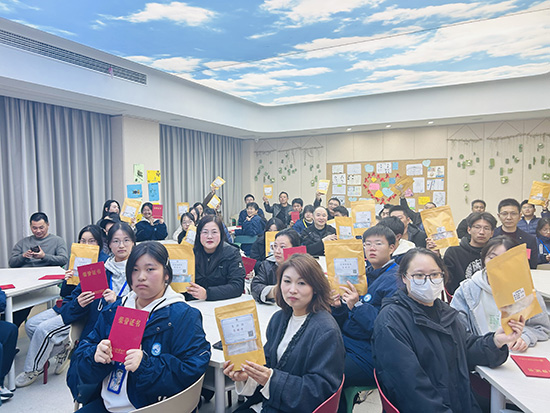 課堂的尾聲,滿是甜甜的儀式感與暖暖的溫情。學校為孩子們鄭重頒發“和諧家庭?情緒管理小能手”榮譽證書,還為每個家庭送上定制款“中醫安神養生飲品禮包”,讓健康與溫情一起,悄悄住進千家萬戶,也為這段親子共學的美好時光,畫上了圓滿又溫柔的句號。