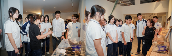 傳梭博物館內(nèi)珍藏的不同國家與民族的紡織物料等展品十分豐富,讓同學(xué)們大開眼界。在館內(nèi)尋根環(huán)節(jié),通過聽取講解員的詳細(xì)介紹,同學(xué)們進(jìn)一步了解了我國紡織技術(shù)的發(fā)展歷程,深刻領(lǐng)悟穿越時空的文化對話。