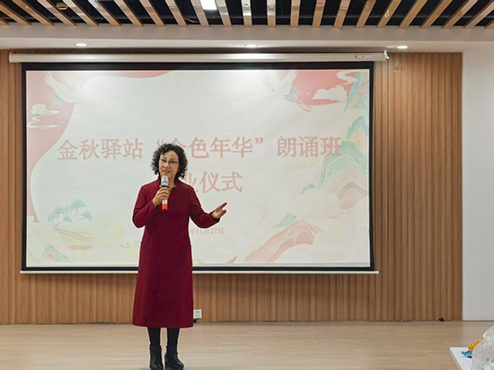 結(jié)課儀式伊始,學(xué)員代表登臺,向社區(qū)搭建的優(yōu)質(zhì)學(xué)習(xí)平臺以及授課老師的專業(yè)指導(dǎo)和辛勤付出表達了誠摯的感謝。學(xué)員代表動情地表示,朗誦班不僅提升了大家的語言表達與文學(xué)鑒賞能力,更豐富了精神文化生活,為社區(qū)長者提供了一個老有所學(xué)、老有所樂的美好空間。