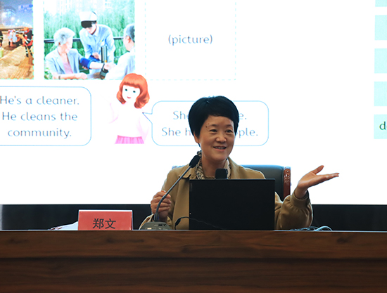 浙江省教育廳教研室小學(xué)英語教研員鄭文帶來專題講座《單元整體視角下的小學(xué)英語新教材教學(xué)設(shè)計(jì)》。她立足單元整體視角,深刻闡釋新教材的育人價(jià)值,強(qiáng)調(diào)激發(fā)和維持學(xué)生學(xué)習(xí)興趣的關(guān)鍵作用。鄭老師以清晰的邏輯框架和生動(dòng)的教學(xué)實(shí)例,系統(tǒng)解答了如何在主題引領(lǐng)下實(shí)現(xiàn)單元整體教學(xué)與新教材、新課堂的有機(jī)融合。她從單元目標(biāo)的設(shè)定,到各課時(shí)任務(wù)的設(shè)計(jì),再到教學(xué)活動(dòng)與素養(yǎng)目標(biāo)的有效銜接,為一線教師提供了一條明確且可行的教學(xué)實(shí)踐路徑。