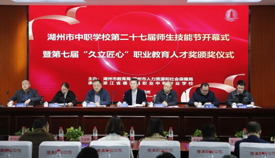 11月25日,湖州市中職學(xué)校第27屆師生技能節(jié)開幕式暨第七屆“久立匠心”職業(yè)教育人才獎頒獎儀式在德清職業(yè)中專舉行。市慈善總會、久立集團股份有限公司、市教育局、市人力社保局等相關(guān)單位負責(zé)人,各縣教育局分管負責(zé)人、職能科室負責(zé)人,市、縣職教教研員和各中職學(xué)校師生代表200余人參加活動。