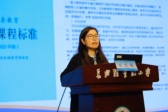 在長興縣實驗小學的觀點報告環節,董春景等四位老師分別立足語文、道德與法治、美育、非紙筆測評四大領域分享實操經驗,提出“三維聯動評價共同體”“全流程數智評價體系”等創新思路,為多學科評價改革提供了可借鑒的實踐范本。