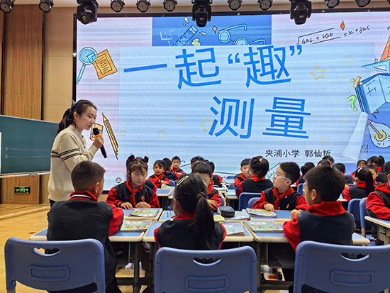在夾浦鎮中心小學,以“立足課堂教學規范,探索量規設計使用”為主題,通過開展課堂展示活動。長興縣夾浦鎮中心小學郭仙哲老師執教《一起“趣”測量》,引導學生通過多元工具測量實踐,在自評、互評與師評的互動中掌握度量知識,同步提升評價素養;長興縣實驗小學顧文斌老師的《曹沖稱象》課堂,借助評價量表實時跟蹤學生學習表現,通過小組稱重實踐培養量感與推理意識,讓評價貫穿教學全過程。