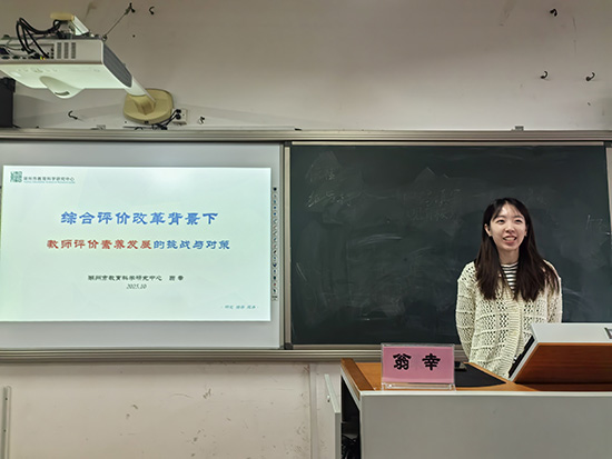 培訓特邀浙江省教研室評價部副主任陳榮榮老師、湖州市教育科學研究中心翁幸老師開展專題講座。陳榮榮老師以《教學質量評價的內涵與技術》為題,從政策背景、專業背景、文件背景三個角度闡述教學質量評價的內涵,結合具體案例引導教師思考素養導向下的評價策略,明晰評價與教學的深度融合路徑。翁幸老師則聚焦《綜合評價改革背景下教師評價素養發展的挑戰與對策》,系統解讀浙江省綜合評價改革頂層設計,通過數據監測分析與優秀案例展示,詳解評價指標體系構建、非紙筆測評設計等實操要點,幫助教師精準把握改革方向。