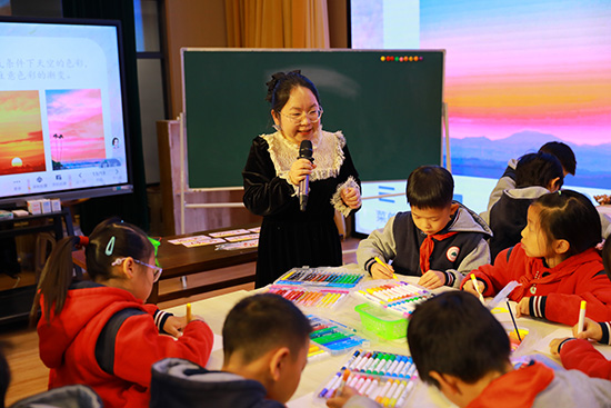 在長興縣實驗小學,以“聚焦多樣評價,探索量規優化”為核心,呈現多學科融合的評價實踐樣態。語文課堂上,倪薇老師的《貓和老鼠》以觀察細致度、表達生動性為評價維度,讓低年級寫話評價趣味化;道德與法治課上,孫雪菲老師《紅紅火火中國年》通過“集五福”評價表、家長評價等多元形式,實現傳統文化學習的全流程評價;美術課上,馬雯燁老師《絢彩的天空》則借助師生共評量表,在色彩實踐中夯實知識、激發創意。