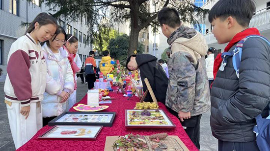 11月25日下午,諸暨市楓橋鎮(zhèn)洪綬小學(xué)廣場(chǎng)熱鬧非凡、人頭攢動(dòng)。廣場(chǎng)四周或擺放、或懸掛著一系列充滿巧思的創(chuàng)意作品——落葉手工與環(huán)保手工作品琳瑯滿目,定格了秋日意趣。同學(xué)們駐足觀賞,時(shí)而對(duì)著心儀作品輕聲交流,時(shí)而在自己的作品前展露欣喜笑容,現(xiàn)場(chǎng)洋溢著濃厚的文化與實(shí)踐氛圍。