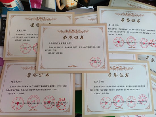 近日,2025年度湖州市社區(qū)教育、老年教育典型案例、優(yōu)秀論文及特色課程評選結(jié)果揭曉。浙江開放大學(xué)安吉學(xué)院積極響應(yīng)《關(guān)于開展2025年度湖州市社區(qū)教育、老年教育典型案例和優(yōu)秀論文征集活動(dòng)的通知》(湖社大〔2025〕1號)與《關(guān)于開展2025年度湖州市社區(qū)教育特色課程評選活動(dòng)的通知》(湖社大〔2025〕2號)文件號召,精心組織教師參與申報(bào),憑借扎實(shí)的教科研實(shí)力與特色鮮明的實(shí)踐成果,在三大類別評選中均有斬獲,一舉奪得一、二、三等獎(jiǎng)多項(xiàng)榮譽(yù)。