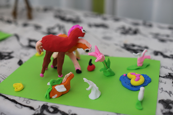 活動(dòng)邀請(qǐng)了世茂幼兒園退休教師、長期投身公益的柯麗君老師,柯老師化身“小馬藝術(shù)家”,將小朋友們帶入一個(gè)奇思妙想的夢(mèng)幻世界。她一邊展示黏土技巧,一邊講述小馬的形象特征和小場(chǎng)景的布局技巧。孩子們聽得認(rèn)真、學(xué)得投入,有的孩子給小馬安上了大波浪鬃毛,有的為小馬貼上閃亮的馬蹄,還有的小組腦洞大開,給小馬放在彩虹橋上……每一匹小馬都帶著獨(dú)一無二的個(gè)性與想象力,活動(dòng)現(xiàn)場(chǎng)笑聲不斷、創(chuàng)意四溢。