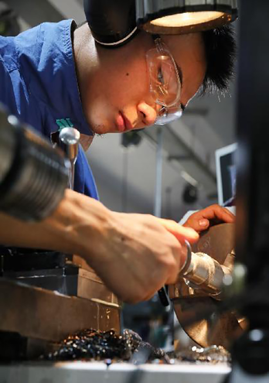 在這場育人機制重構中,學院提出了具有鮮明辨識度的理念——“金線鍛魂”。所謂“金線”,不僅象征智能制造領域的技術高度,更代表一條貫穿育人標準、過程管理與教學反饋的質量主線;“鍛魂”則強調在技能之外,更需重塑學生的職業精神、價值信念與實踐品格。這一育人路徑既關注技藝的磨礪,也關注靈魂的淬火,促使“技”與“魂”相互成全、同步升溫。