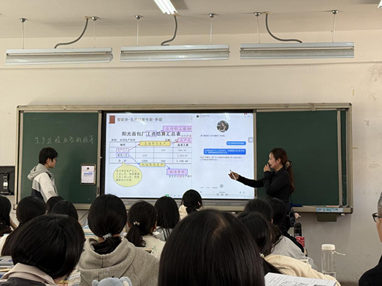 朱余瑤老師的《生產過程業務的核算》巧妙運用AI技術創設教學情境,將抽象的生產流程轉化為直觀的可視化模型。課程通過案例分析、小組討論等方式,幫助學生理解生產成本的歸集與分配方法,培養學生的會計核算思維和實務操作能力。