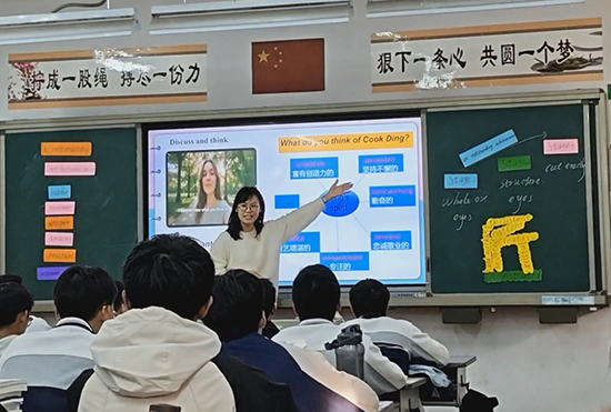 管林燕老師的《Craftsmanship》閱讀課以擊鼓傳花游戲點燃課堂氛圍,自然引入“庖丁解牛”這一傳統智慧。通過抽卡排序、情節復述等創新活動,引導學生深入理解文本,并銜接當代工匠精神。課程最后引導學生結合專業特色,思考如何成為“當代庖丁”,實現了文化傳承與職業引領的有機結合。