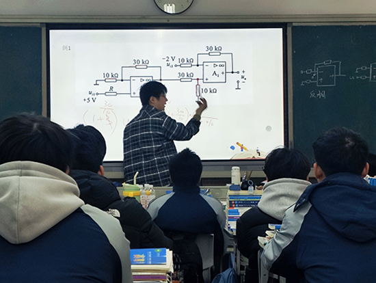 樂清市柳市職業(yè)技術(shù)學(xué)校黃昊翔老師在《運(yùn)算放大器復(fù)習(xí)課》中,采用“考綱要求—題型歸納—一題多變”的三環(huán)遞進(jìn)教學(xué)法,系統(tǒng)性地梳理了運(yùn)算放大電路的核心知識(shí)點(diǎn)。他依托“虛短虛斷”原理,引導(dǎo)學(xué)生深入解析電路特征,課堂互動(dòng)頻繁,學(xué)生參與度極高。