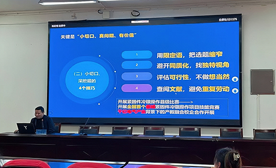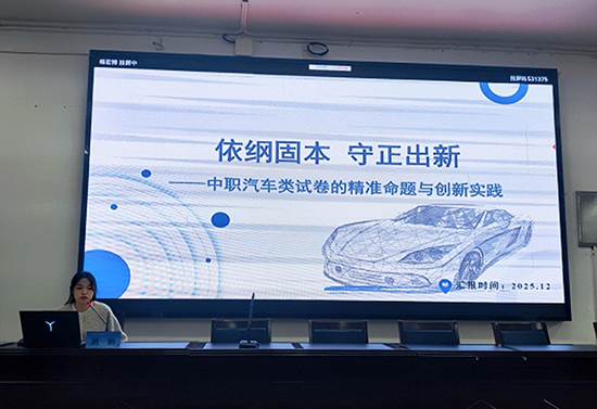 樂清市職業(yè)中等專業(yè)學(xué)校胡桐老師進(jìn)行了題為《靶向核心素養(yǎng)的命題深度研究》的微報(bào)告,以“依綱固本,守正出新”為核心理念,現(xiàn)場(chǎng)詳細(xì)拆解了最新的教研綱領(lǐng),并示范了“考點(diǎn)靶向—情境重構(gòu)—梯度分層”的精準(zhǔn)命題路徑。她深入探討了未來汽修專業(yè)的命題方向及其創(chuàng)新實(shí)踐,為后續(xù)汽修專業(yè)的命題改革提供了切實(shí)可行的操作范式,有力地促進(jìn)了高效備考。