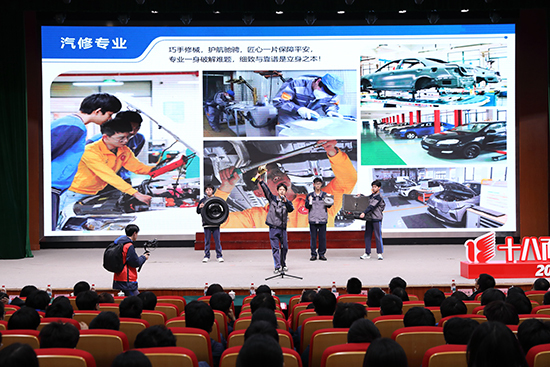 三位優(yōu)秀學(xué)生代表隨后陸續(xù)登臺分享成長故事。“技能之星”李志程在實(shí)訓(xùn)車間精益求精,以專注打磨專業(yè)本領(lǐng);“學(xué)習(xí)之星”張飄洋在書山學(xué)海中步履不停,用堅(jiān)持書寫求知之路;“雙創(chuàng)之星”陳瑞博敢想敢試,將奇思妙想轉(zhuǎn)化為實(shí)實(shí)在在的實(shí)踐成果。他們的成長軌跡,正是職教中心青春學(xué)子“技能成才、強(qiáng)國有我”的生動詮釋。