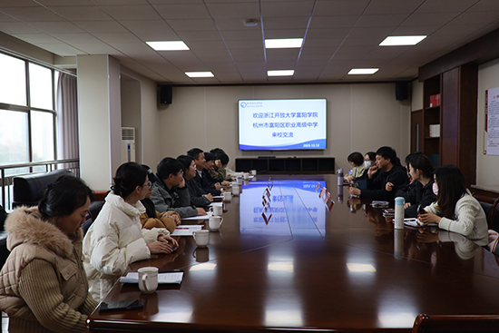12月12日,浙江開放大學富陽學院護理教研組一行18人,在學院黨委委員汪利章的帶領下,來到海寧衛生學校(海寧市綜合高級中學)開展交流活動,校長陳杰、副校長沈孝麗熱情接待了來賓。