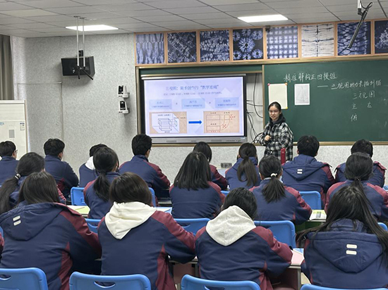 隨后,第二節公開課《幾何“透視鏡”:用三視圖解鎖素描結構密碼》帶來了另一番教學精彩。課程打破了數學與美術學科的傳統界限,以三視圖為橋梁,將抽象的數學邏輯與具象的素描實操有機結合,成功解決了幾何體素描中“底面不等邊、頂點偏移、側棱不對稱”等常見難題。