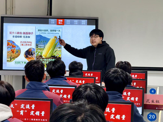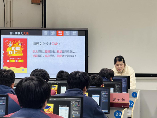活動伊始,第一節跨界融合公開課《“文”定流量,“商”定銷量——雙十二海報的制作與擬寫》驚艷亮相。課程以“家鄉助農”為核心主題,創新性地將電商營銷思維與平面設計技能融為一體,讓學生在實踐中感受跨界知識的應用價值。