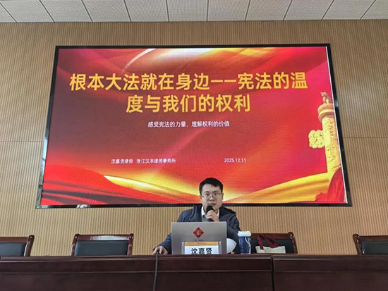 為扎實推進憲法宣傳教育,增強學生法治意識,12月11日,浙江省湖州藝術與設計學校通過南太湖新區司法分局仁皇山司法所協調,邀請漢本律師事務所沈嘉賢律師來校開展普法講座,旨在引導學生在理解法律的基礎上,樹立規則意識,守護自身權益。