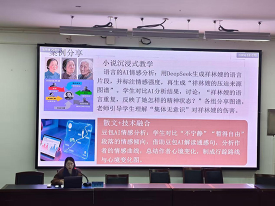 吳芳芳老師在《智啟文心:AI技術(shù)驅(qū)動(dòng)下語(yǔ)文教學(xué)探索》中,系統(tǒng)構(gòu)建了“繪景·繪情·繪人”的AI融合教學(xué)框架。她演示了如何用即夢(mèng)AI生成祥林嫂的對(duì)比場(chǎng)景、用豆包AI分析情感曲線、用DeepSeek復(fù)原詩(shī)歌初稿,并推薦了涵蓋備課、互動(dòng)、評(píng)價(jià)的多元AI工具矩陣,主張技術(shù)應(yīng)服務(wù)于“文心”的啟迪。