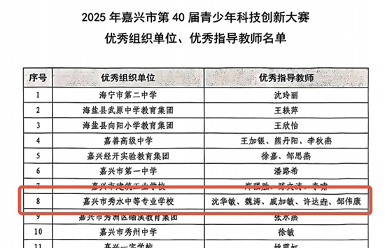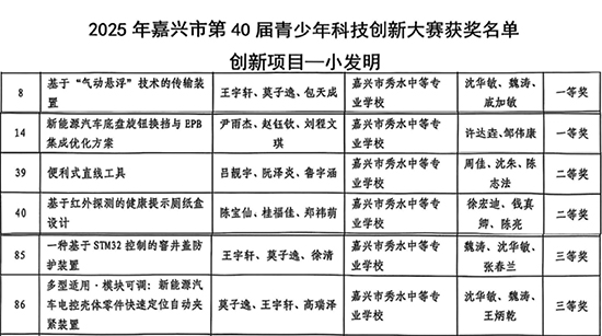 嘉興市秀水中等專業學校在2025年嘉興市第40屆青少年科技創新大賽中喜獲佳績