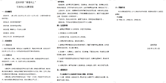 本次“青春向上”引體向上比賽,雖然已隨昨日的夕陽(yáng)畫(huà)上圓滿句號(hào),但賽場(chǎng)上激蕩的那種“不甘落后、勇于攀登”的精神,卻深深烙印在每一位啟知學(xué)子的心中。它超越了簡(jiǎn)單的體能較量,成為一堂生動(dòng)的成長(zhǎng)課:成功源于點(diǎn)滴積累,突破始于每一次嘗試。