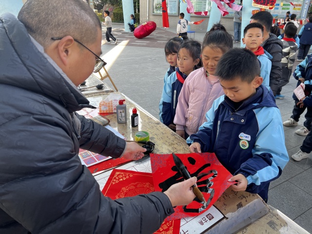 據天荒坪成校負責人介紹,此次活動是 “文化進基層” 的實踐之一,既讓學生近距離感受書法藝術的魅力,也以 “福” 為紐帶傳遞新年暖意。天荒坪小學老師表示,這樣的互動讓傳統文化 “活” 在了校園里,是最生動的美育課。