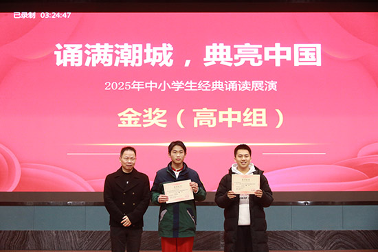 展演現(xiàn)場(chǎng),學(xué)校學(xué)子身著整齊服裝,精神飽滿(mǎn)、聲情并茂地演繹了經(jīng)典篇目《月光下的中國(guó)》。他們的誦讀時(shí)而激昂高亢,時(shí)而婉轉(zhuǎn)悠揚(yáng),字字句句飽含深情,不僅精準(zhǔn)傳遞出經(jīng)典文本的文化內(nèi)涵,更展現(xiàn)出新時(shí)代青少年對(duì)中華優(yōu)秀傳統(tǒng)文化的深刻理解與熱愛(ài)。規(guī)范的吐字發(fā)音、默契的團(tuán)隊(duì)配合與恰到好處的藝術(shù)呈現(xiàn),贏得了評(píng)委專(zhuān)家的一致認(rèn)可和現(xiàn)場(chǎng)觀眾的陣陣掌聲,最終以絕對(duì)優(yōu)勢(shì)斬獲金獎(jiǎng)第一名。